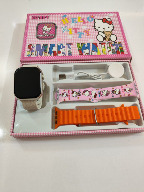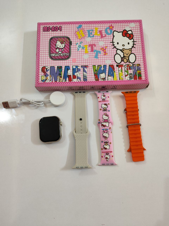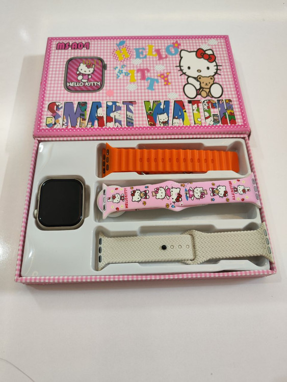 این مدل دارای جعبه ی صورتی رنگ زیبا با طرح KITTY است که این مدل مورد علاقه همه ی دخترخانم ها است. ساعت بچه گانه MS-A04 دارای 3 عدد بند متنوع و سیلیکونی است که استفاده از آن برای کودکان خیلی راحت است و در این حال به راحتی هم از ساعت جدا نمی شود. بند های سیلیکونی ضد حساسیت، سبک و قابل شستشو هستند که بسیار مناسب کودکان است. به علاوه یکی از بند ها دارای طرح کیتی